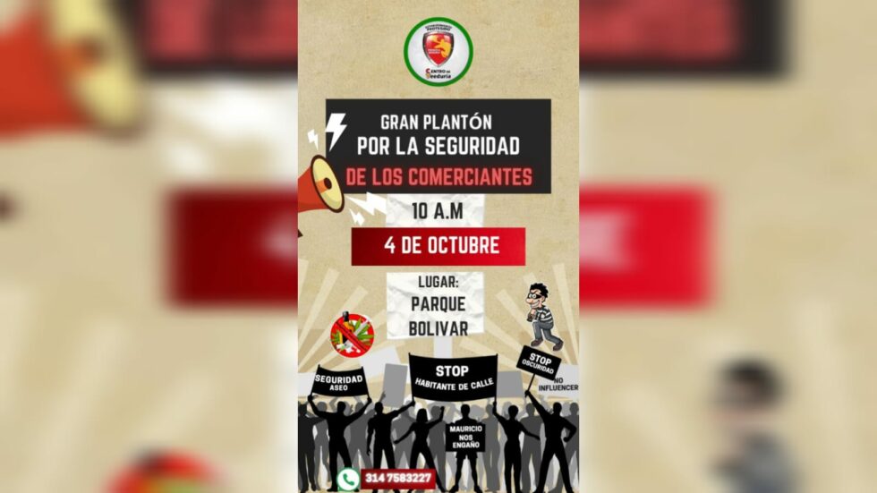 Ante la ola de robos que afecta a los comerciantes de Pereira y la falta de acciones efectivas por parte de las autoridades, los propietarios de negocios en Pereira han decidido organizar un plantón como medida de protesta.