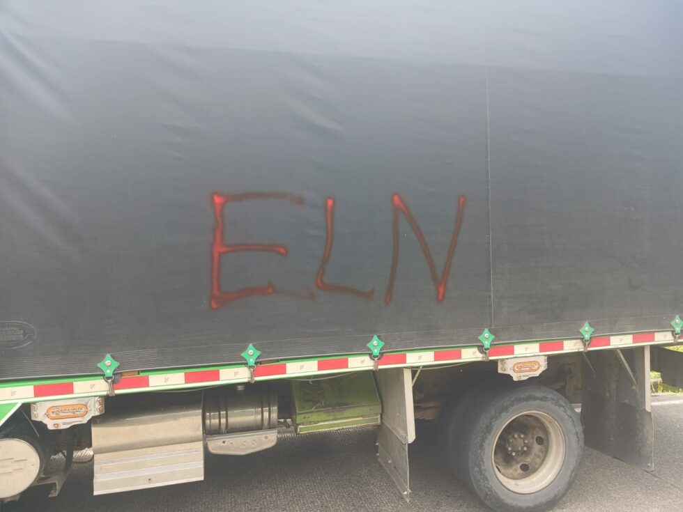 En las últimas 48 horas, la vía Panamericana, que une los departamentos de Risaralda y Chocó, ha sido escenario de un retén ilegal del Ejército de Liberación Nacional (ELN), donde vehículos de carga fueron detenidos y pintados con las siglas de este grupo subversivo.