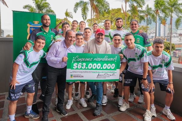 El gobernador de Risaralda, Juan Diego Patiño entregó incentivos económicos a la selección Risaralda de fútbol de salón, recientemente coronada campeona nacional en la categoría sub-23.