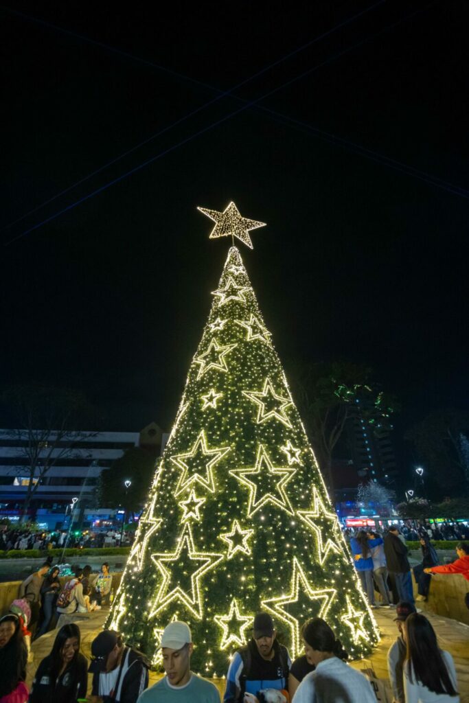 La ciudadanía asistió al parque Bolívar para ver el encendido del árbol de más de 15 metros de alto, una gigantesca estructura adornada con un tecnológico lleno de imágenes navideñas en movimiento.