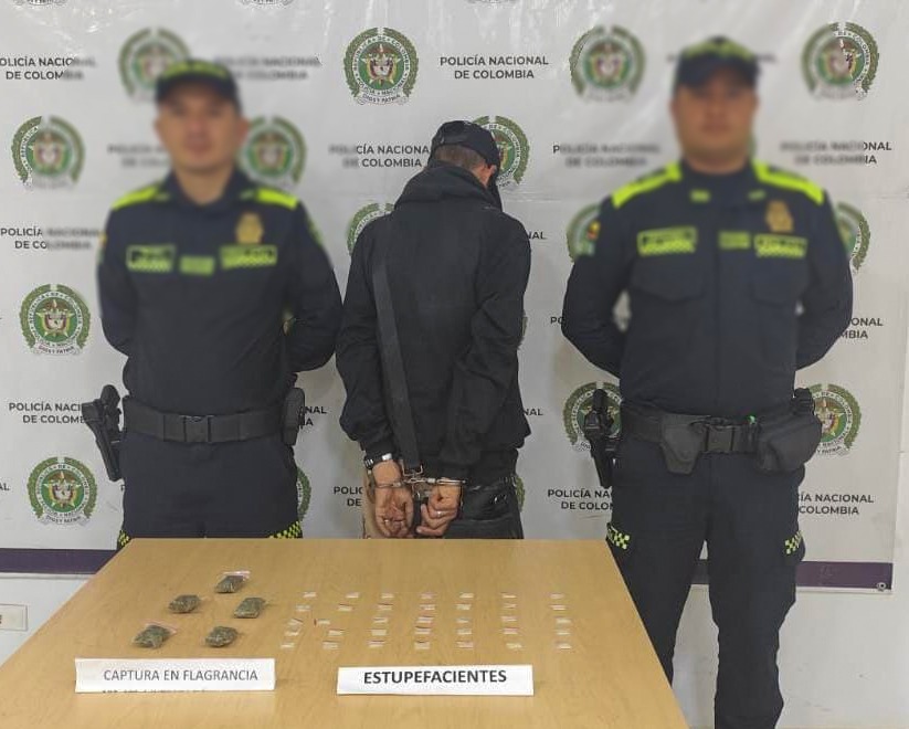 Durante el procedimiento, efectuado por uniformados del CAI Villasantana en labores de patrullaje, registro y control, se le encontraron 40 dosis de sustancias estupefacientes, distribuidas entre bazuco y marihuana.