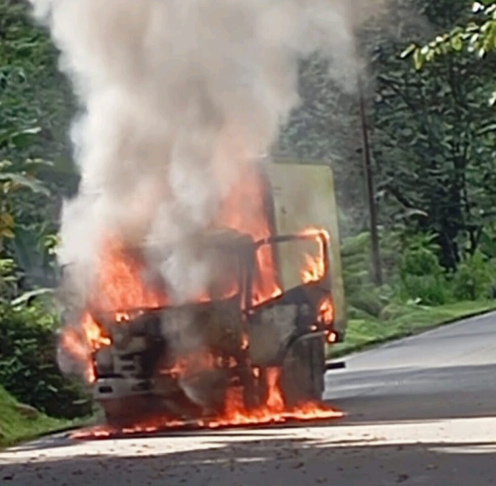Supuestamente, integrantes de la guerrilla del Ejército de Liberación Nacional (ELN) salieron a la vía, pararon el vehículo tipo furgón y luego de bajar al conductor, le prendieron fuego.