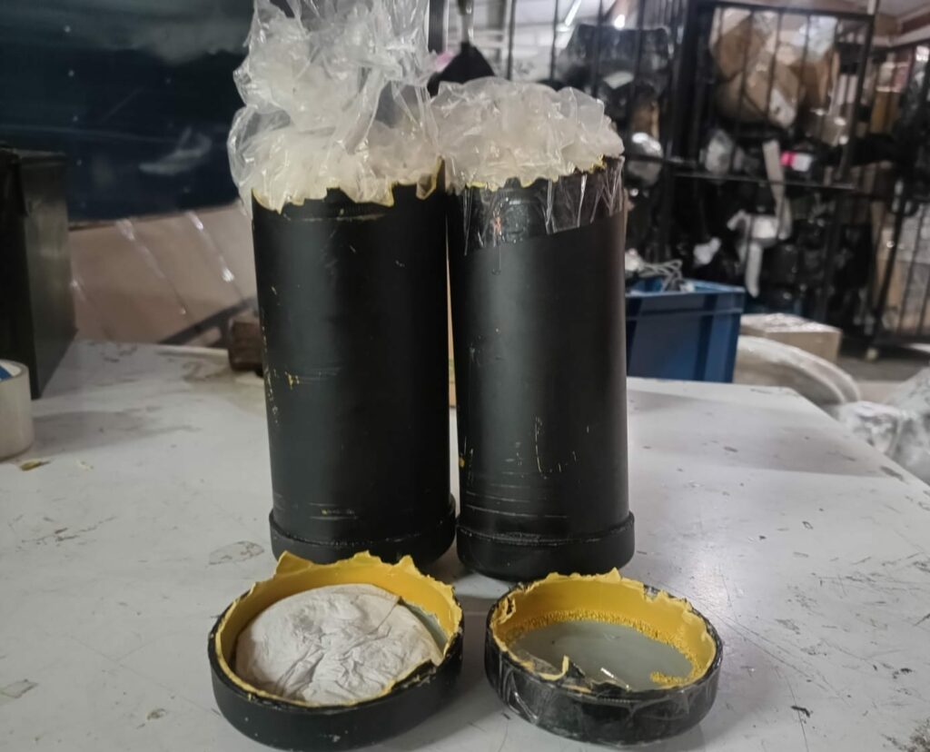 En un segundo operativo realizado el mismo día, los controles permitieron la incautación de 1.100 gramos de base de coca. Esta vez, la droga se encontraba escondida dentro de un bafle de sonido y tubos de PVC.