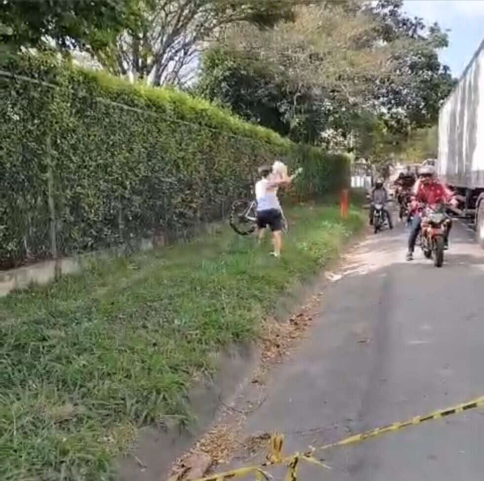 Una grabación compartida en redes sociales captó el momento en que un conductor de una camioneta Suzuki arremete físicamente contra un ciclista en plena vía Cerritos – Pereira. El incidente ocurrió en medio de un bloqueo vehicular provocado por un accidente de tránsito fatal en la misma carretera.