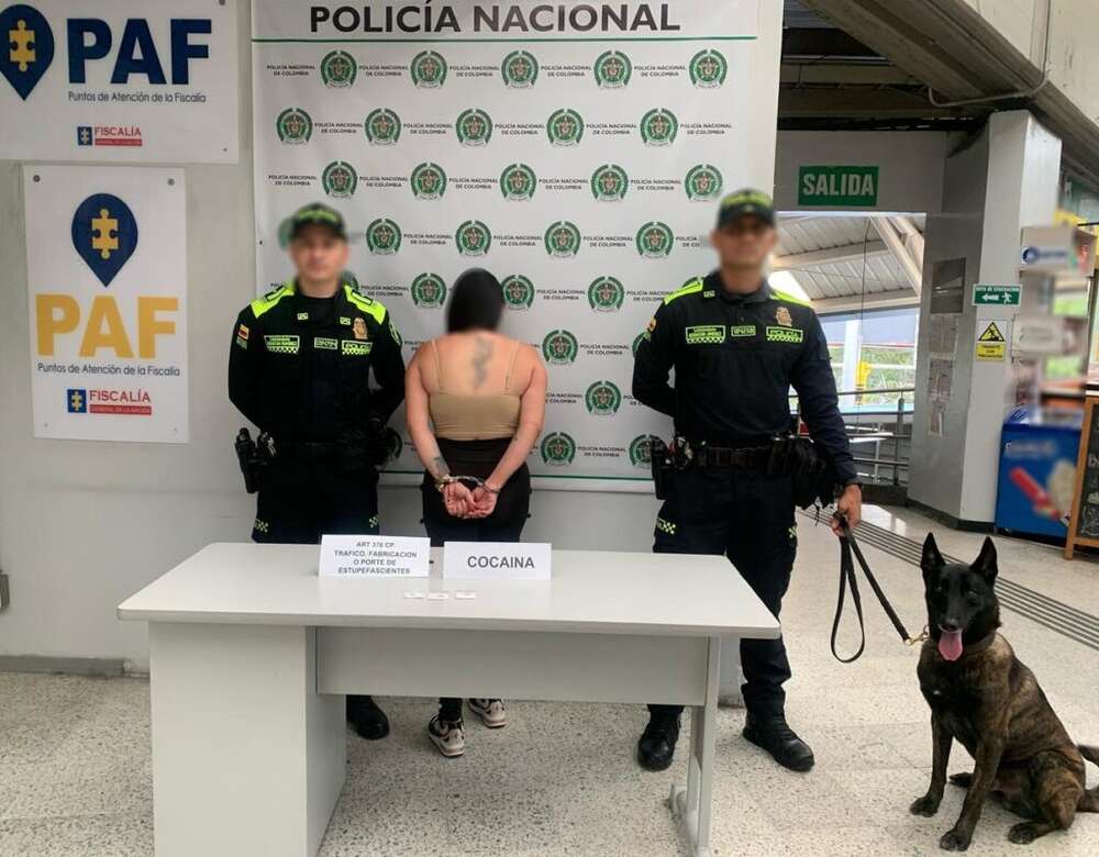 - Terminal de Transportes, Pereira: Una mujer fue capturada luego de que un canino antinarcóticos detectara estupefacientes en su posesión.