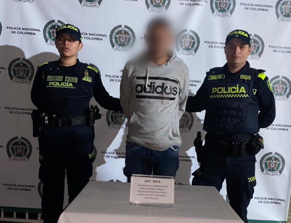 Posteriormente, remitido a la estación de Policía, donde se oficializó su captura y judicialización por los delitos de intimidación o amenaza con arma de fuego, porte de armas, elementos o dispositivos menos letales, armas de fuego hechizas y arma blanca.