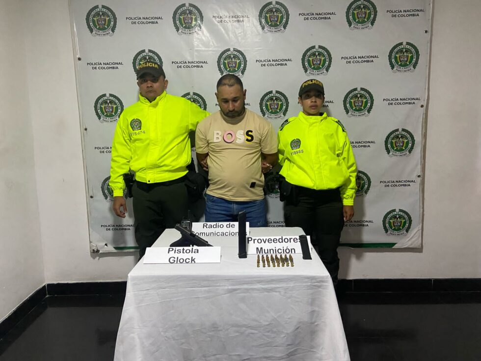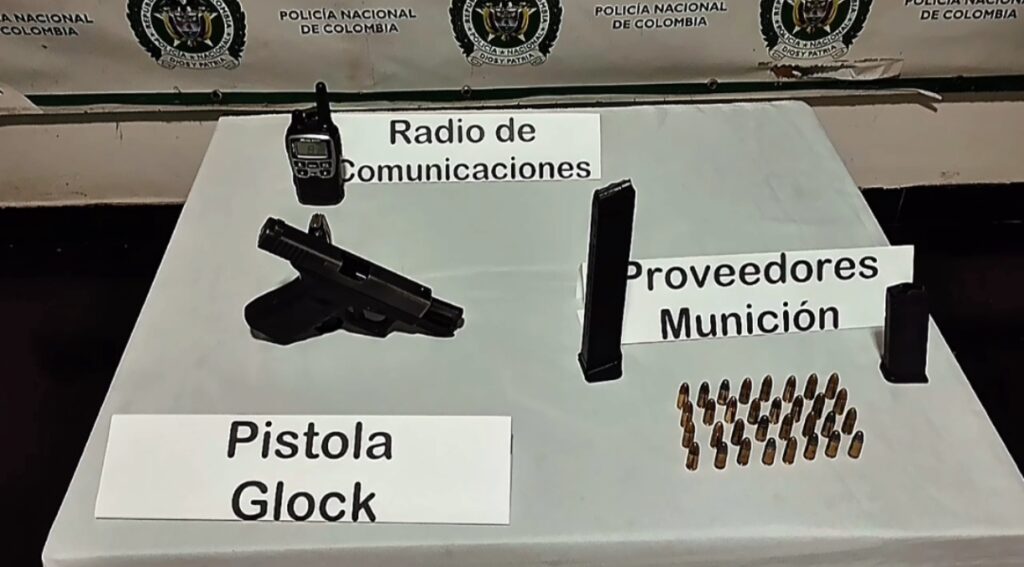 Durante el procedimiento, a ‘Barbas’ le incautaron una pistola Glock calibre 9 mm con dos proveedores. También 32 cartuchos para la misma arma. También tenía un radio de comunicación, utilizado para coordinar acciones en campo.