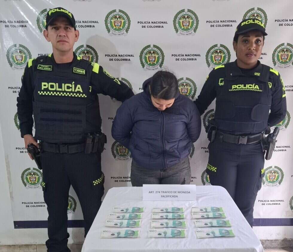 La alerta de un comerciante permitió que la Policía Nacional pudiera interceptar a la mujer en el centro del municipio de Balboa, departamento de Risaralda. Al parecer, intentaba hacer varias compras con billetes falsos.