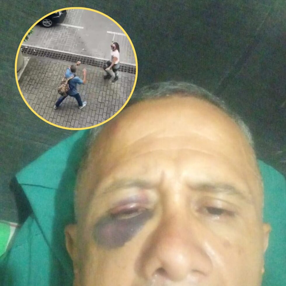 Un video que circuló por redes sociales mostró a Samuel Duarte como uno de los protagonistas de un altercado que se presentó este lunes en pleno centro de Pereira. El hombre terminó inconsciente en el suelo, con un hematoma en su ojo derecho y varios puntos de sutura.
