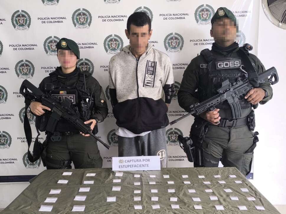 Según el reporte oficial, el hombre transportaba varias dosis de base de coca ya empacadas en pequeñas porciones listas para su comercialización.