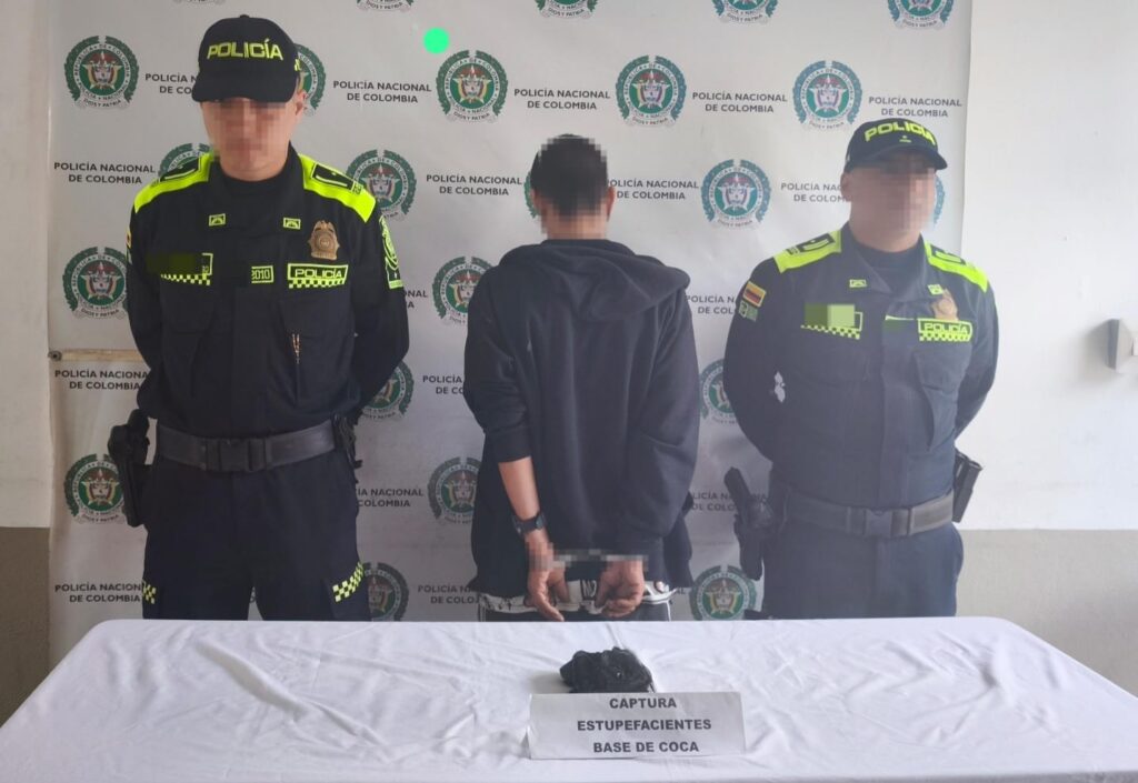 En simultáneo, en el municipio de La Virginia, la Policía materializó otra captura en el barrio La Magdalena, donde un hombre de 37 años, oriundo del mismo municipio, fue sorprendido portando bolsas plásticas transparentes que contenían base de coca.