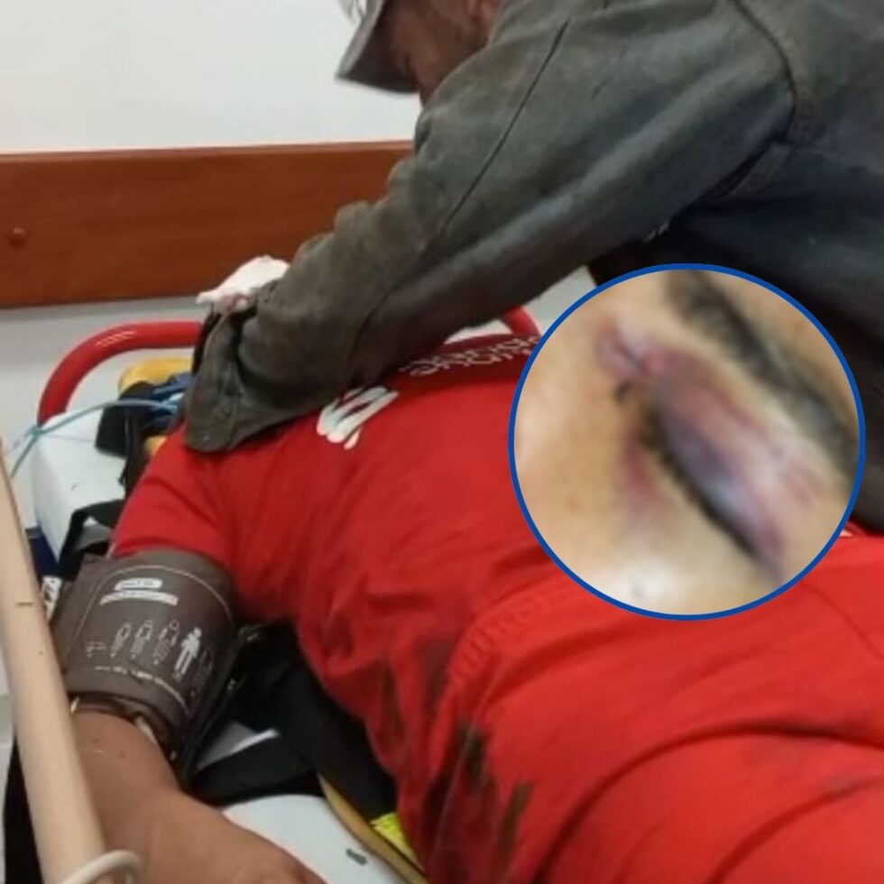 Robinson Andrés Martínez Aguirre, de 23 años, sufrió una grave lesión ocular. Perdió el conocimiento a causa de los fuertes golpes recibidos. Desde el domingo permanece bajo observación médica, mientras lo trasladan a un centro de salud de mayor complejidad.