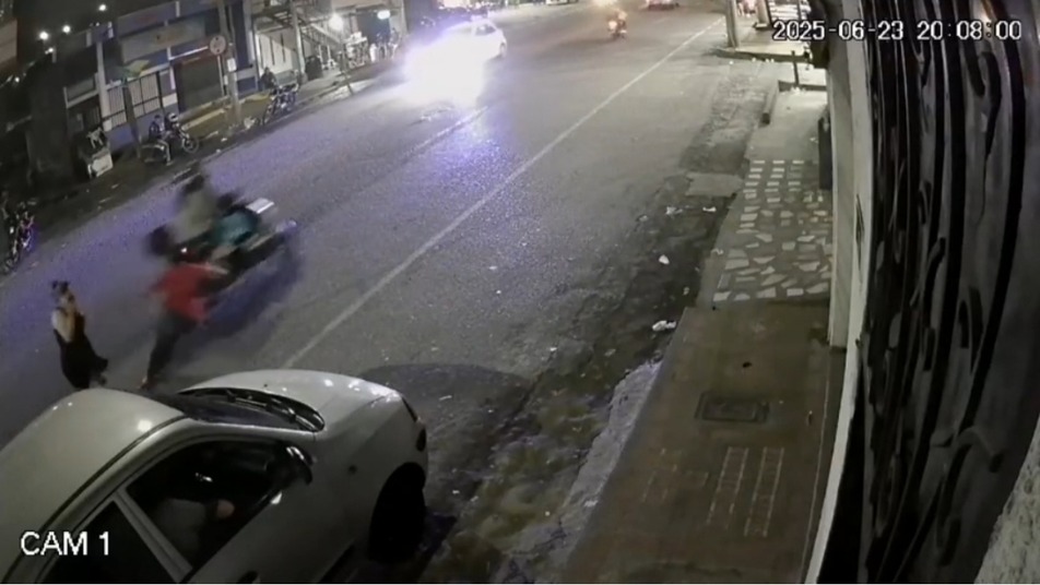 Una cámara de seguridad captó el dramático momento en que una mujer adulta mayor terminó atropellada por una motocicleta, mientras cruzaba una calle la noche del lunes festivo en el barrio San Judas, en Dosquebradas.