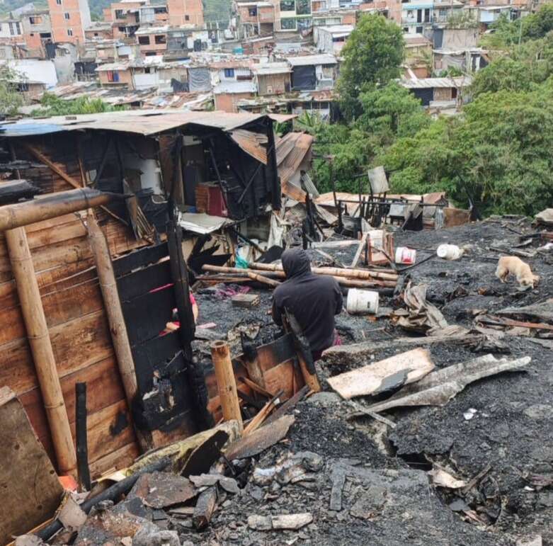 Una emergencia por incendio estructural dejó al menos 12 viviendas destruidas y más de 36 familias damnificadas la noche de este lunes en la comuna Villasantana, en Pereira. El fuego se propagó rápidamente. Dejó a su paso pérdida de enseres, materiales de trabajo y, sobre todo, la tranquilidad de una comunidad entera.
