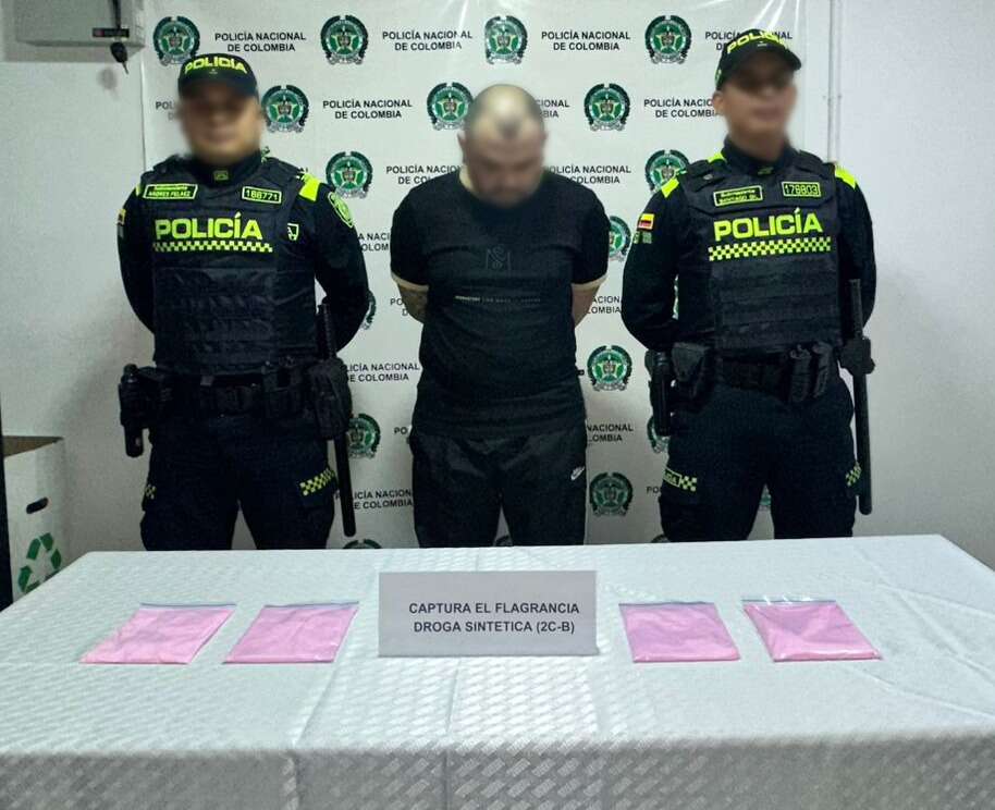 Llevaba cuatro bolsas herméticamente selladas. Todas con un polvo rosado de alto valor ilegal. En total, había casi un kilo de 2CB. La sustancia la hallaron en un paquete en el Aeropuerto Internacional Matecaña.