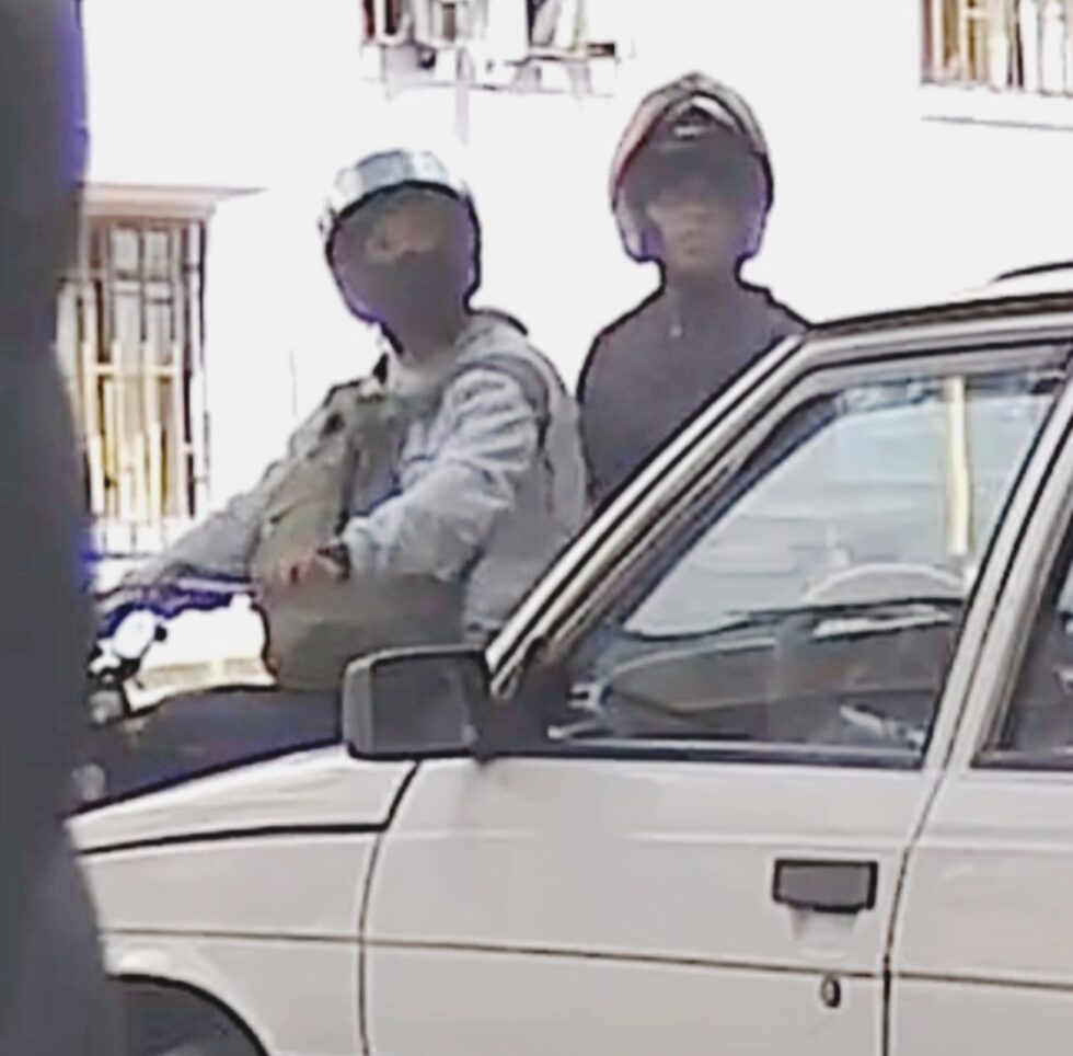 En la grabación se observa a los delincuentes desplazándose en una sola motocicleta. Al identificar el vehículo que planeaban hurtar, el conductor detiene la marcha y el parrillero desciende con aparente calma.