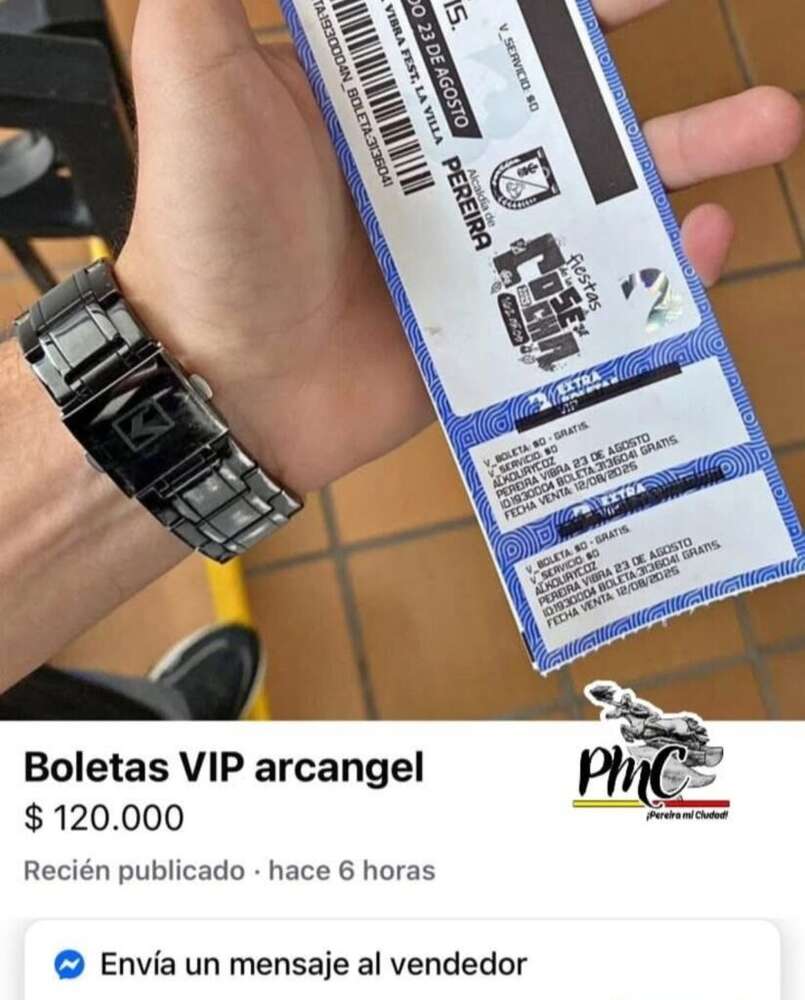 El secretario de Gobierno de Pereira, Jorge Mario Trejos, habló sobre el tema: “Este es un evento gratuito. Quien revenda o compre está cayendo en una estafa. Ninguna boleta debería costar un peso”, dijo.