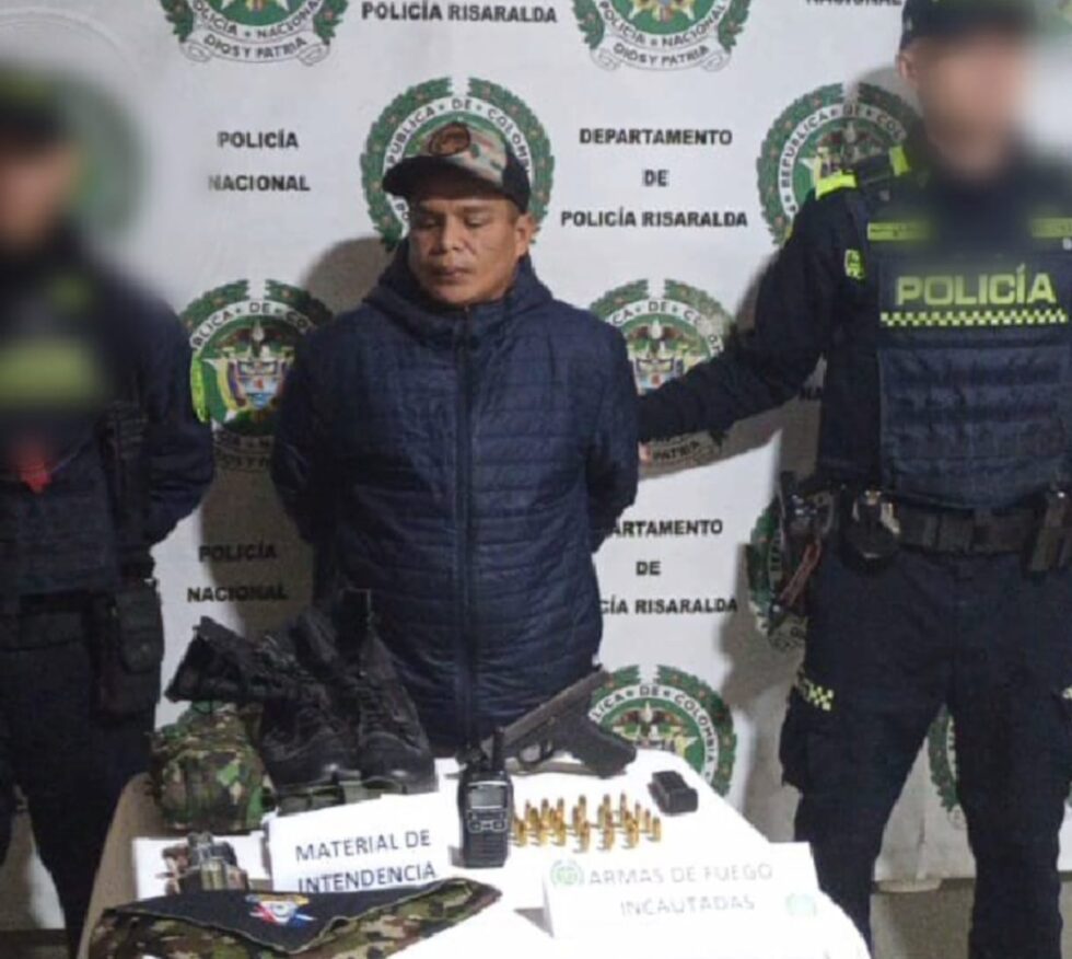Su detención se produjo la madrugada de este viernes en el municipio de Apía, Risaralda, durante un allanamiento en el barrio Centro, adelantado por la Sijín y la Sipol en coordinación con la Fiscalía General de la Nación.