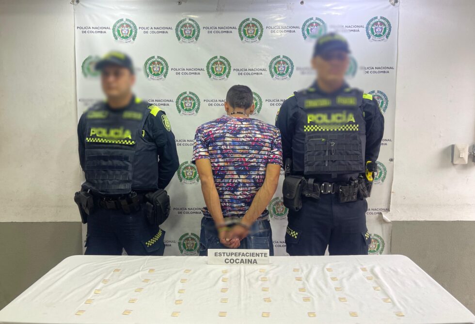 El ciudadano, residente en el barrio El Progreso, levantó sospechas al notar la presencia de los uniformados. Su actitud nerviosa llevó a que se le practicara un registro personal, en el que le hallaron 40 bolsas plásticas transparentes de cierre hermético, cada una con base de coca lista para la venta.