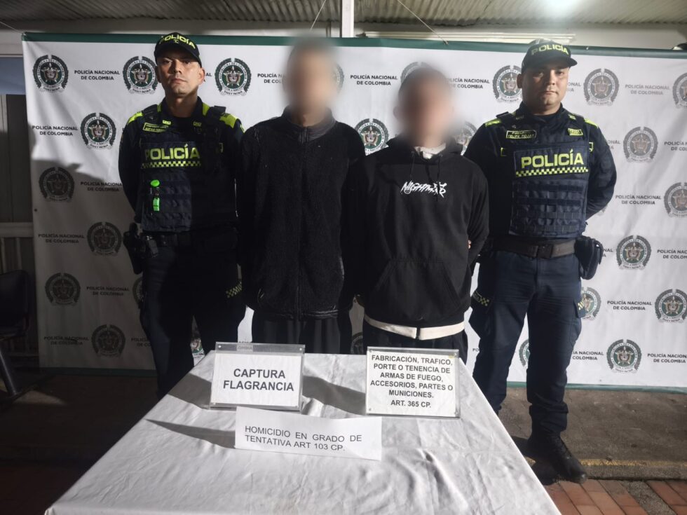 Los sospechosos quedaron identificados como Juan Daniel Jaramillo Loaiza, de 23 años, quien presenta una anotación judicial por homicidio; y Ronal Andrés Vallejo López, de 22 años, con siete antecedentes judiciales: cuatro por violencia intrafamiliar, dos por hurto y uno por acto sexual.