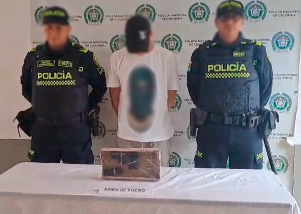 Durante el registro personal, los uniformados encontraron una pistola Glock 26 calibre 9 milímetros, con un cargador y 15 cartuchos sin percutir, que el hombre llevaba ocultos entre su ropa.