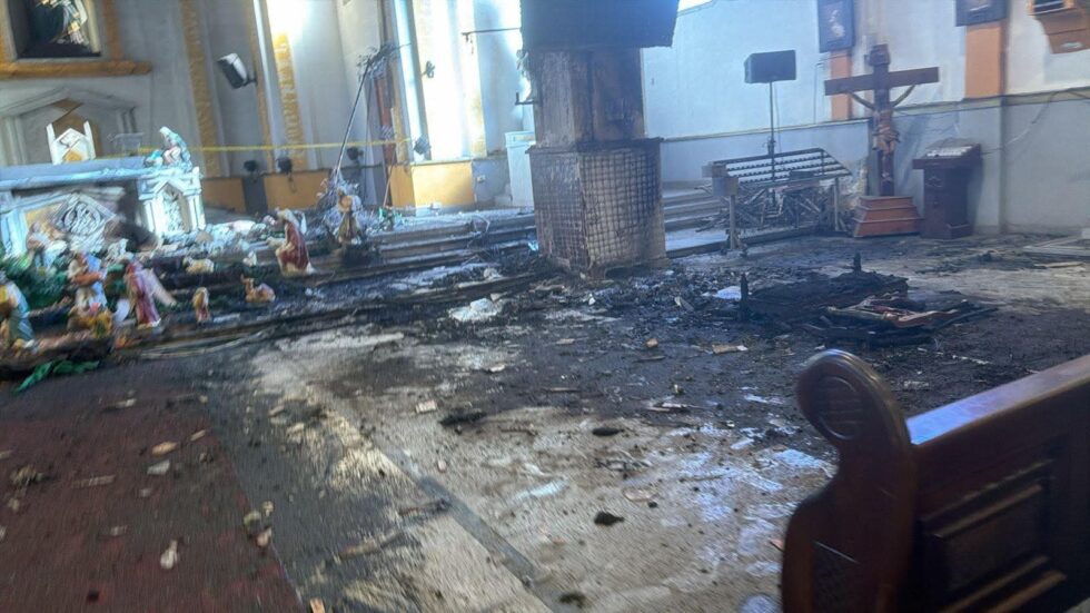 Los uniformados controlaron la situación, pero el daño ya estaba hecho: se quemó el pesebre completo, instrumentos de la orquesta, televisores, parte del sonido y varios elementos del altar.