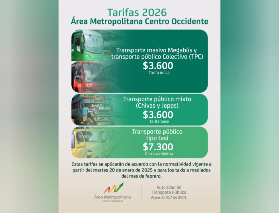 El AMCO fijó tarifa de $3.600 para buses, Megabús y transporte mixto desde este 2026 en Pereira, La Virginia y Dosquebradas.