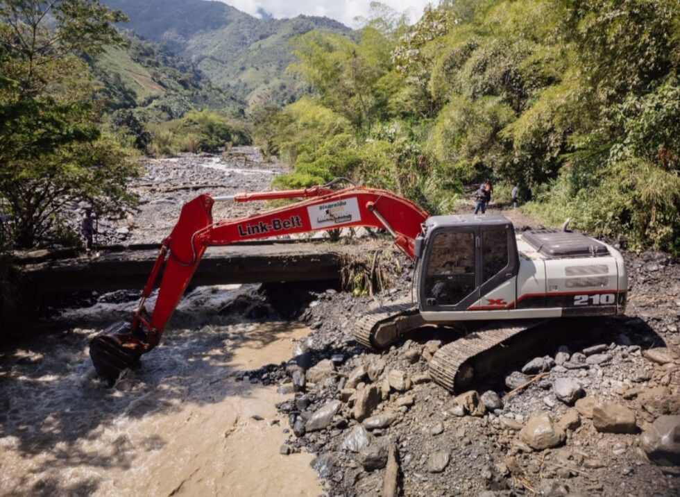 Ante el reporte, el gobernador Juan Diego Patiño Ochoa ordenó el desplazamiento de maquinaria amarilla para remover escombros, estabilizar el terreno y habilitar un acceso provisional.