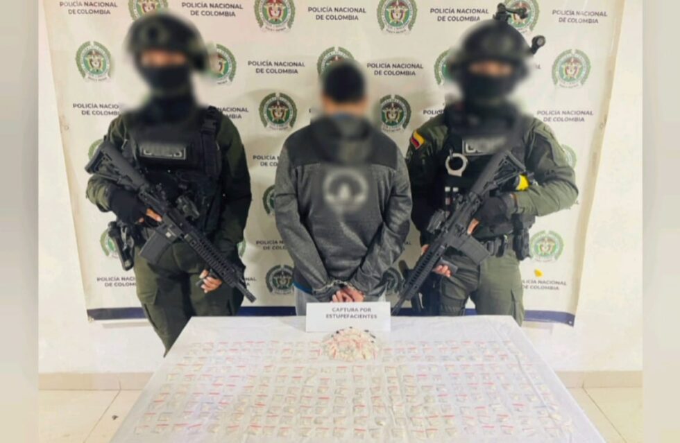 Esta semana, Durante un patrullaje, los uniformados lo interceptaron y le encontraron 314 bolsas de estupefacientes, de una sustancia no identificada, con un peso cercano a los 100 gramos y un avalúo aproximado de dos millones de pesos.