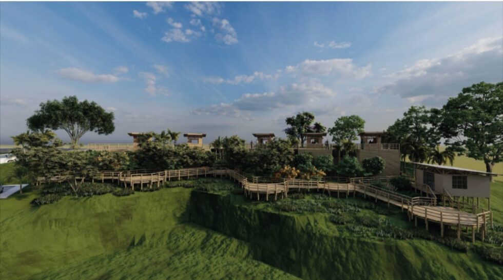 La obra integrará plataformas panorámicas, pasarelas elevadas en madera, terrazas, zonas contemplativas, áreas verdes, casetas comerciales y baterías sanitarias, con mínima intervención del entorno natural.