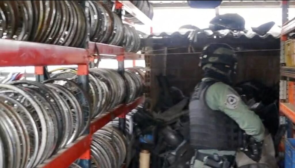 Durante las nueve diligencias de allanamiento realizadas en barrios como Sucre, Aguablanca, Prados del Sur, Las Torres y San Judas, las autoridades incautaron al menos 120 autopartes, entre ellas motores, cajas de transmisión y chasis.