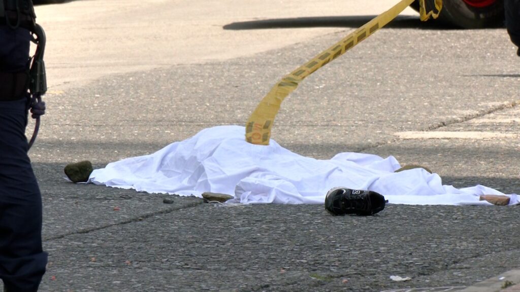 La víctima permanece sin identificar. Se trata de un hombre de aproximadamente 25 años, tez trigueña y cabello negro, que vestía camisa azul, bermuda de jean azul y zapatos negros.