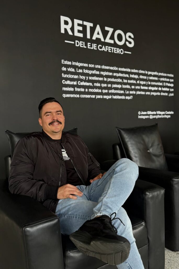 El fotógrafo Juan Gilberto Villegas Castaño construyó esta muestra como un ejercicio de observación prolongada. Su trabajo recoge momentos cotidianos en distintas zonas del Eje Cafetero, con énfasis en la interacción entre las personas y el paisaje.