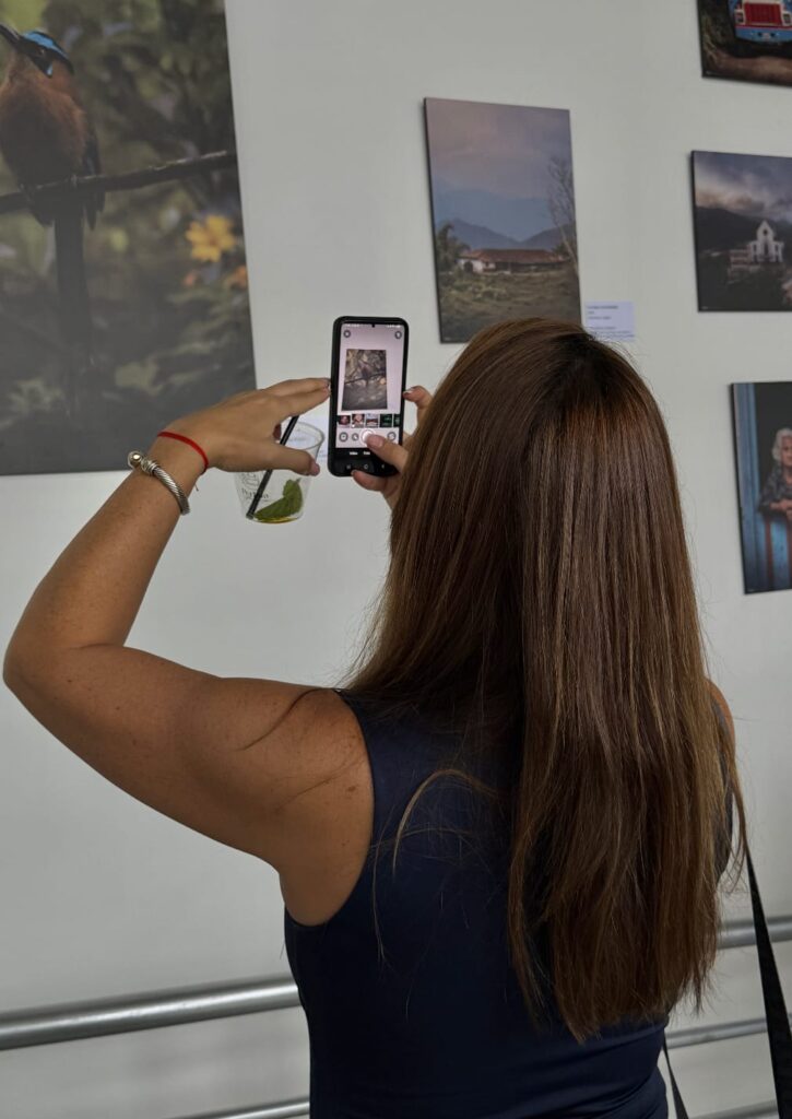 Durante la inauguración, los asistentes recorrieron la galería en silencio, deteniéndose frente a cada pieza. Algunos utilizaron sus teléfonos para registrar las fotografías, mientras otros comentaban escenas que les resultaban familiares. La exposición genera un reconocimiento inmediato en quienes han vivido o conocen el territorio cafetero.