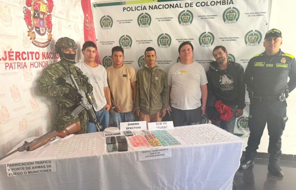 Durante las diligencias incautaron un arma de fuego tipo rifle, 65 gramos de cocaína, 60 gramos de bazuco, 23 gramos de tusi, 20 gramos de anfetaminas en pastillas, seis teléfonos celulares, dinero en efectivo y elementos para la dosificación de sustancias.